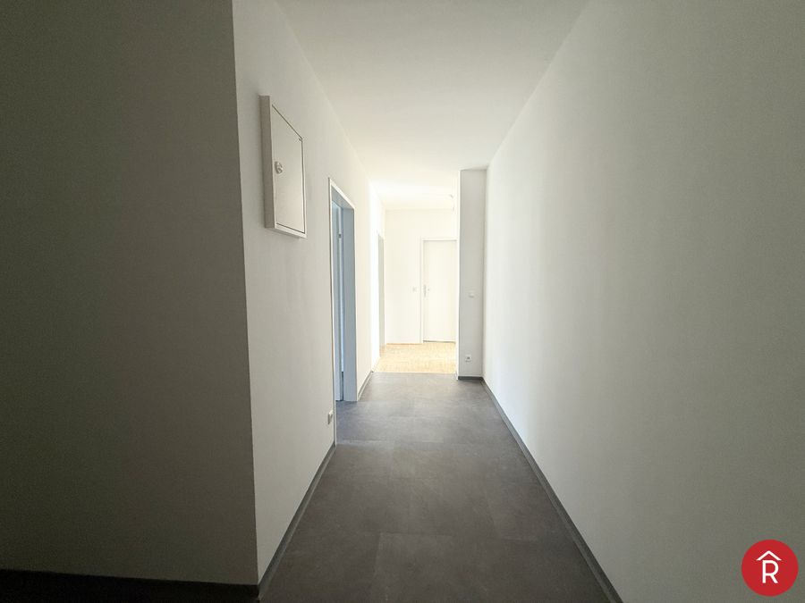 Die Wohnung ist 67,36 m² groß und unterteilt sich in Vorzimmer, Schlafzimmer, Bad mit Badewanne, separates WC, Wohnzimmer, extra Raum für eine Küche mit Abstellraum und Loggia. Zusätzlich gibt es ein eigenes Kellerabteil sowie einen KFZ-Stellplatz im Freien.